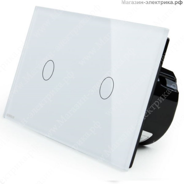 Выключатель сенсорный проходной (переключатель)белый,2 поста, 2 клавиши. Размер: 150х80мм